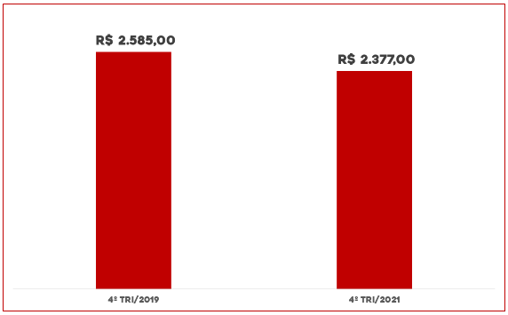Durante a pandemia, o rendimento médio dos trabalhadores caiu 8%. Entre o 4º trimestre de 2019 e o 4º trimestre de 2021, a perda real foi de R$ 208. Nesse período, apenas Piauí, Sergipe e Amapá registraram aumento do rendimento médio real do trabalho.
