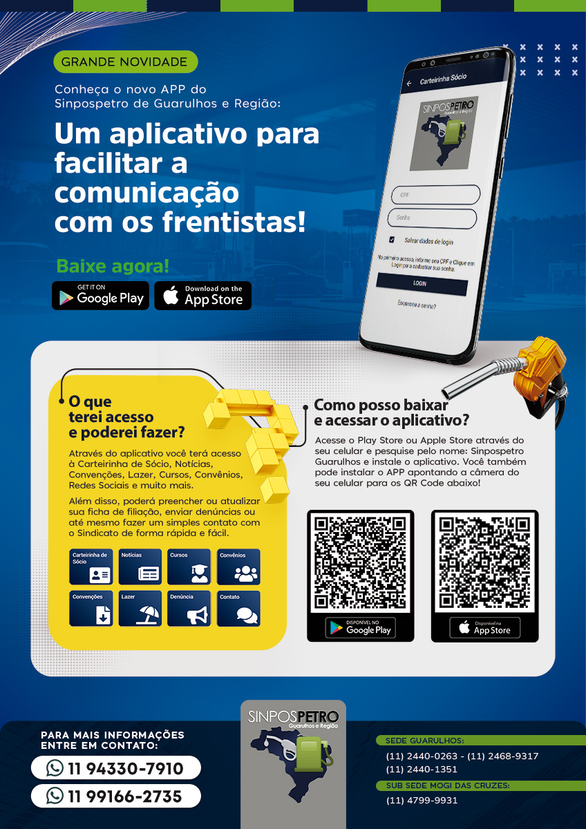 Através do aplicativo você terá acesso à Carteirinha de Sócio, Notícias, Convenções, Lazer, Cursos, Convênios, Redes Sociais e muito mais. Além disso, poderá preencher ou atualizar sua ficha de filiação, enviar denúncias ou até mesmo fazer um simples contato com o Sindicato de forma rápida e fácil.