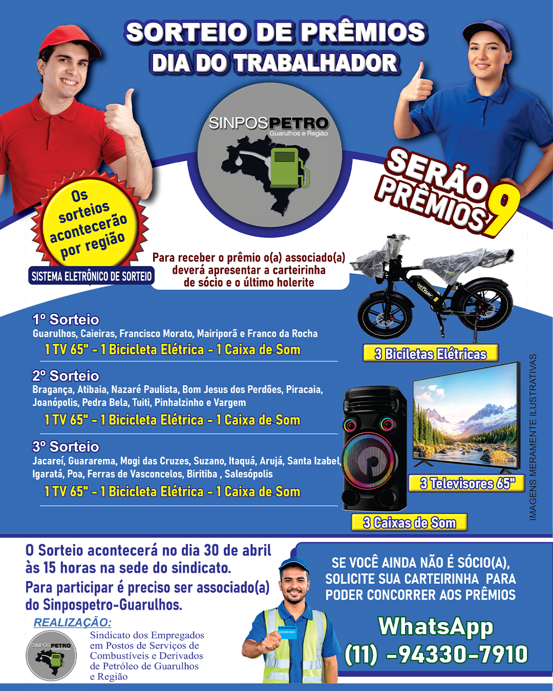 Vem aí o sorteio especial do Dia do Trabalhador, com vários prêmios para os associados.
